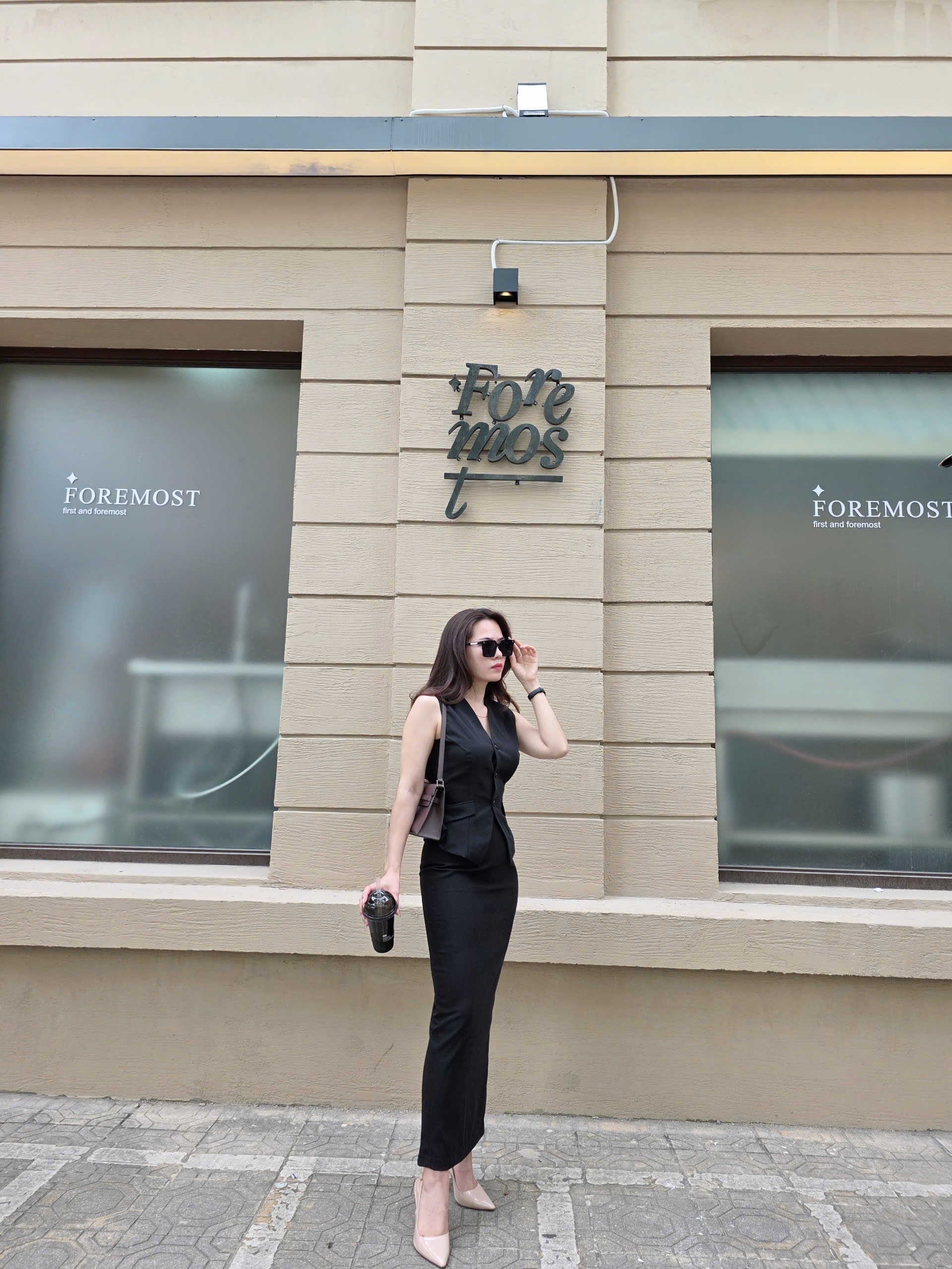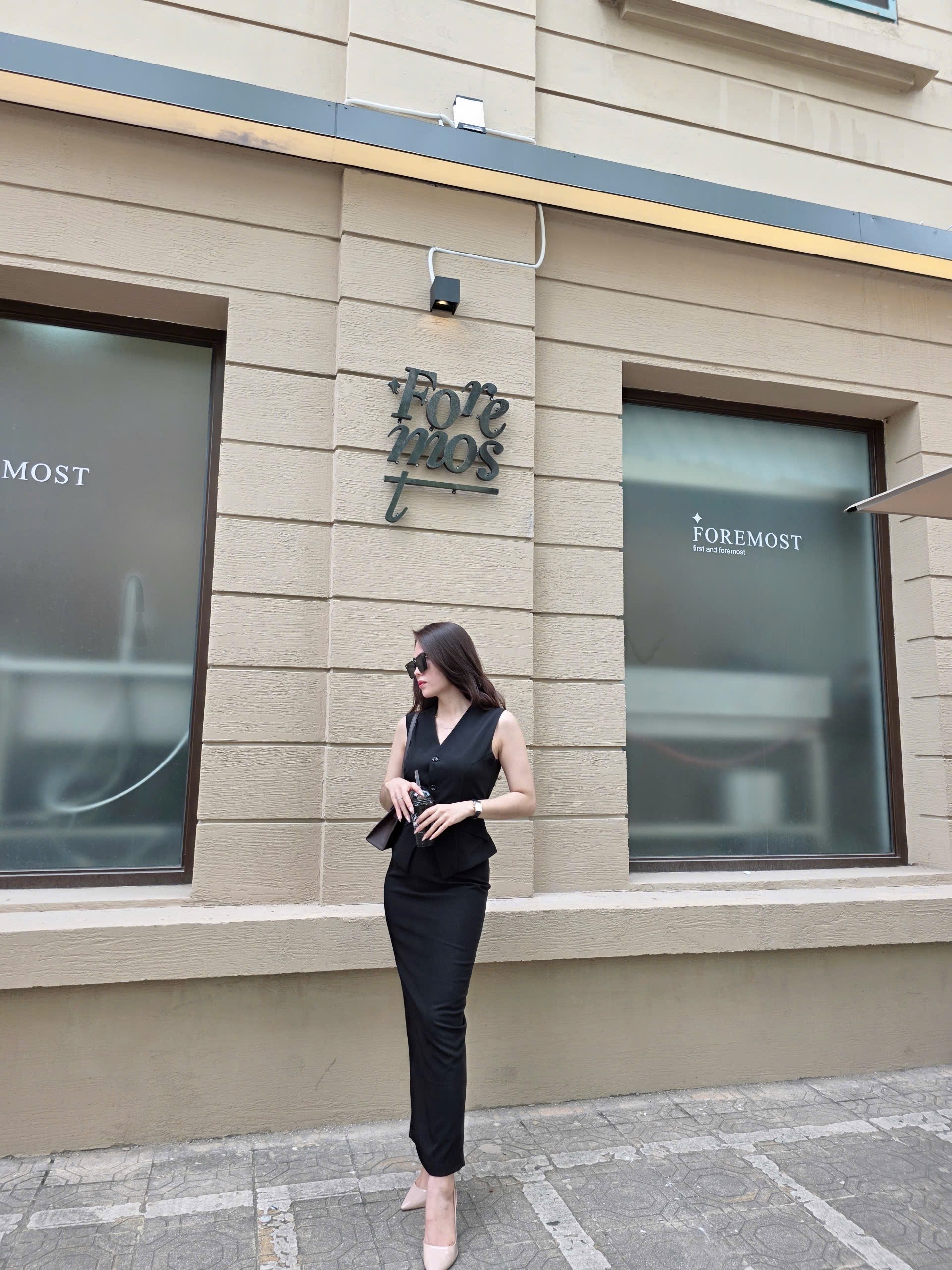 SET LIN Áo gi-lê sát nách và chân váy bút chì dài 95cmSET LIN Áo gi-lê sát nách và chân váy bút chì dài 95cm